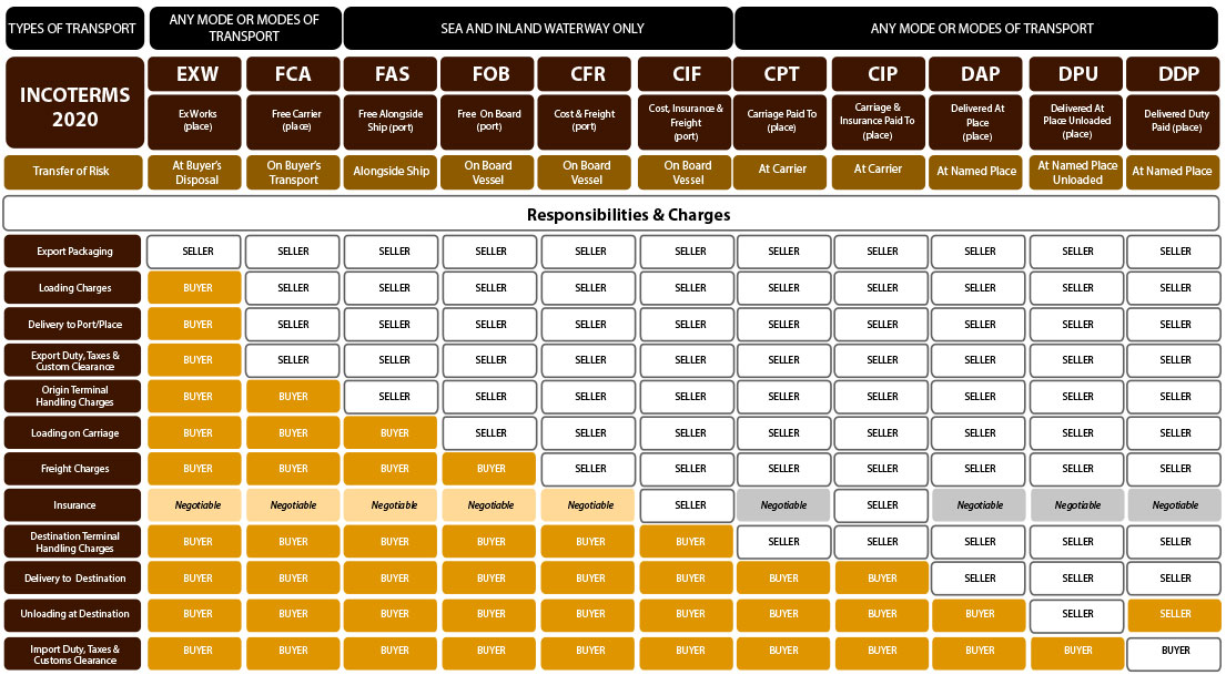 - All export, import and cross trade shipments